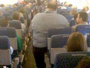 Penerbangan kelas ekonomi biasanya sempit. Nah bayangkan, dalam penerbangan semacam itu Anda tertahan di belakang orang yang begitu besar yang menutupi seluruh lorong.